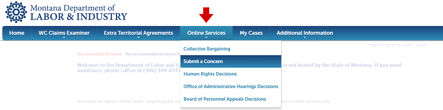 Use the Montana Department of Labor and Industry's Citizen Portal to file an online LEGAL complaint. When you submit a complaint, you may wish to stay anonymous.
